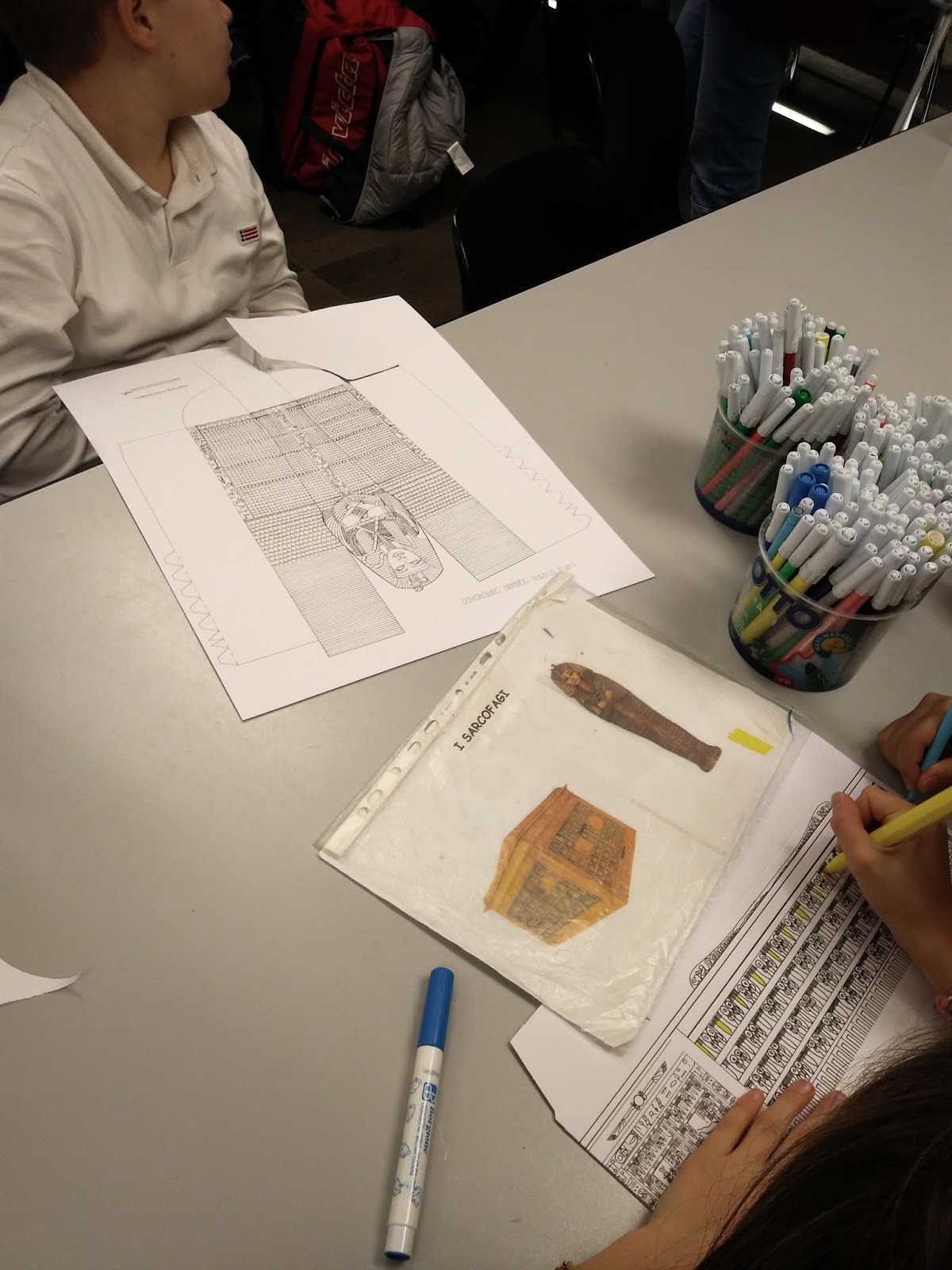 "Maestra è difficilissimo scrivere e disegnare su questo papiro finto.. pensa che fatica facevano gli egizi che non avevano neanche le penne!!". (Riccardo)